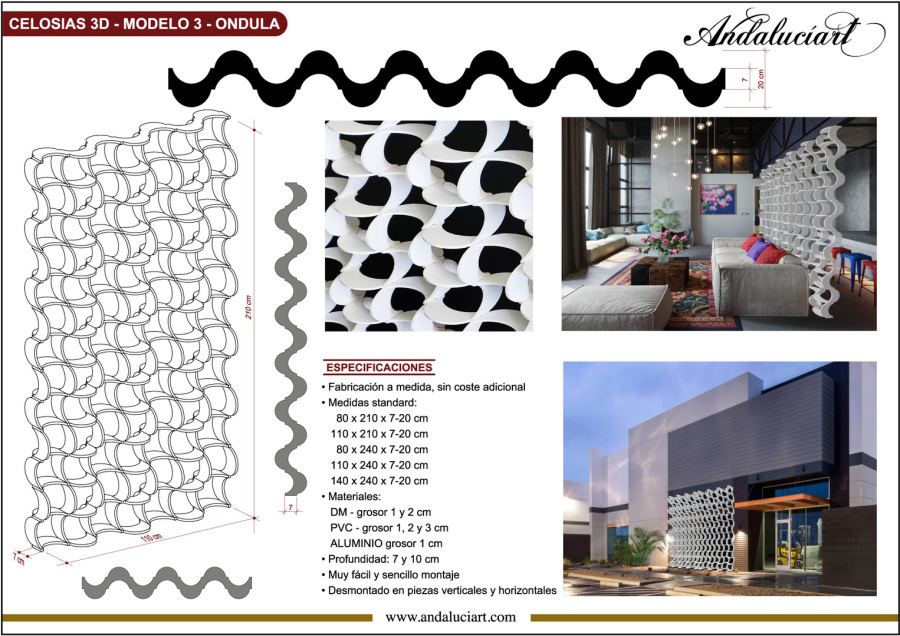 Celosias tipo 3D, un diseño muy actual para la decoración de espacios arquitectónicos, fabricados con alta tecnología con una gran variedad de diseños, materiales y acabados.