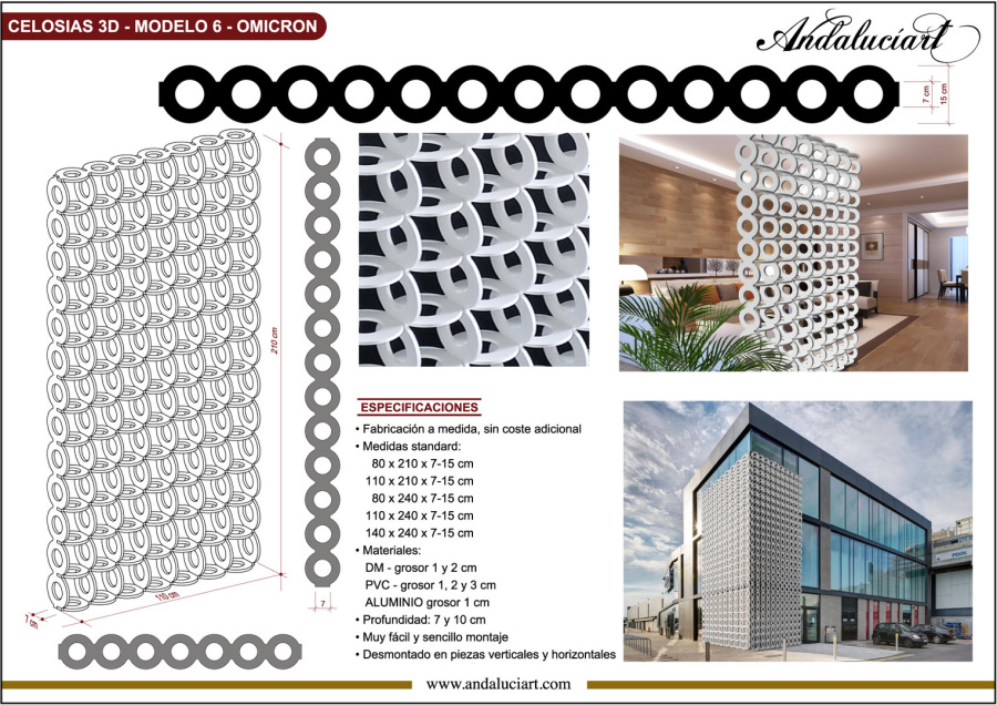 marca Andaluciart® de celosias 3d un nuevo diseño y concepto de celosias para la decoración en edificios, viviendas, hoteles y comercios, que aportan un toque exclusivo en la arquitectura, utilizando celosías en diferentes materiales para la construcción