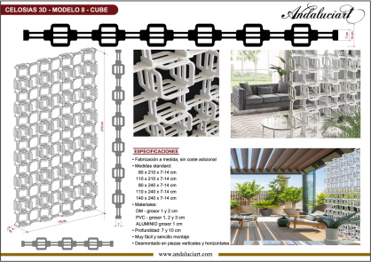 Andaluciart® presenta nuestros modelos exclusivos de celosías arquitectonicas 3D, un amplio catálogo de diferentes diseños que pueden ser de gran ayuda en proyectos de arquitectura e interiorismo. Un toque exclusivo en la decoración con paneles decorativos de celosias de arquitectura para la decoración en edificios, hoteles, restaurantes, y tiendas comerciales.